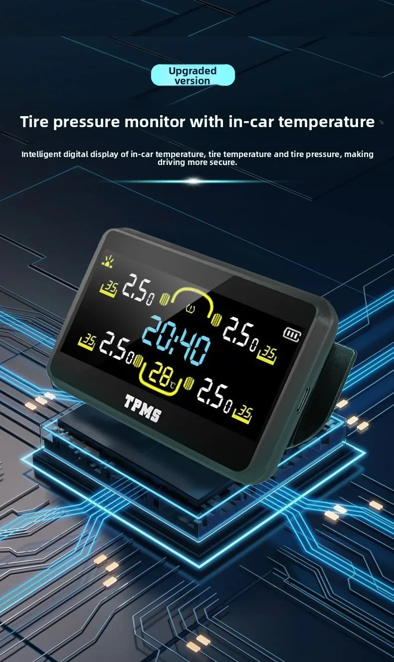 NUOVO monitor della pressione dei pneumatici automobilistici Strumento di rilevamento della pressione dei pneumatici solare Orologio esterno wireless ad alta precisione Ampio schermo