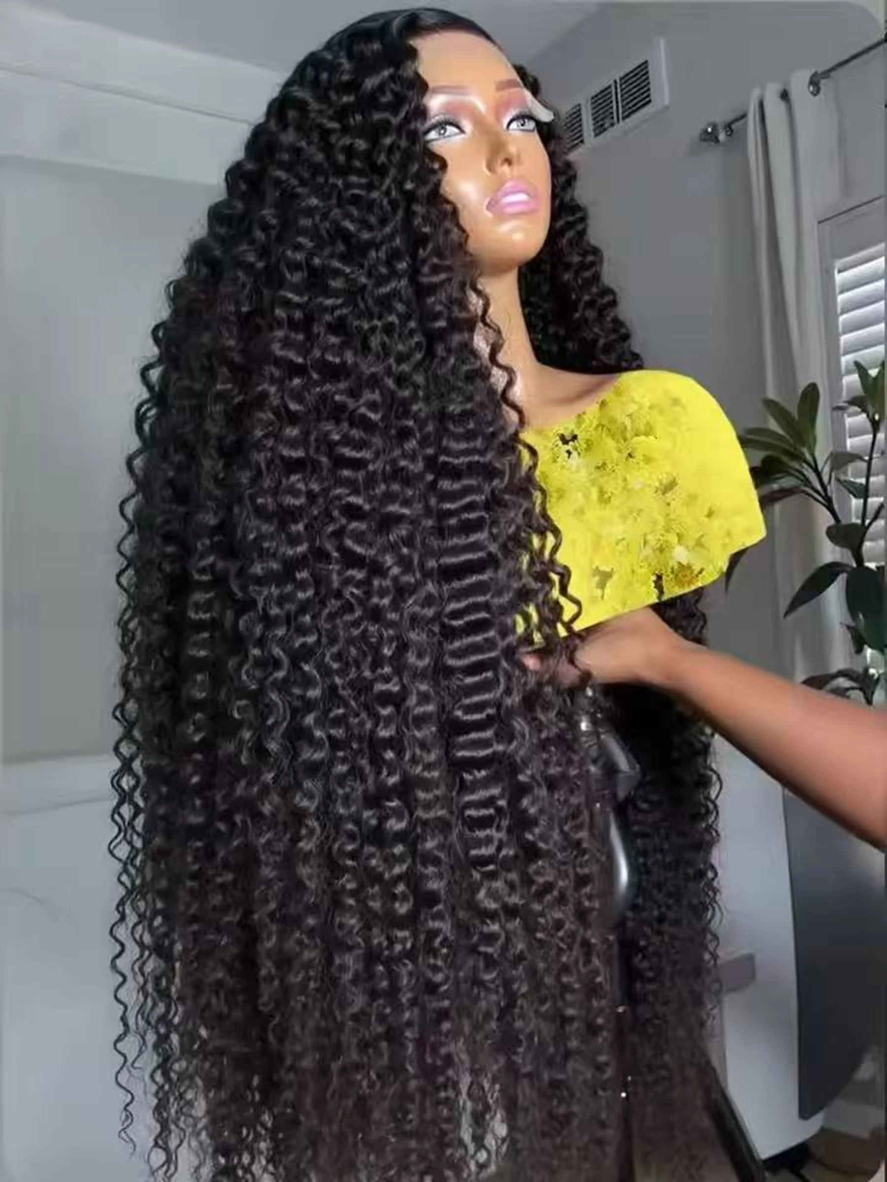 Parrucca Sintetica Nera 13X4x1 HD Lace Frontal con Coda di Cavallo, Ricci Jerry, Pre-Plucked, per Cosplay, Uso Quotidiano, Feste, Matrimoni, Capelli Morbidi