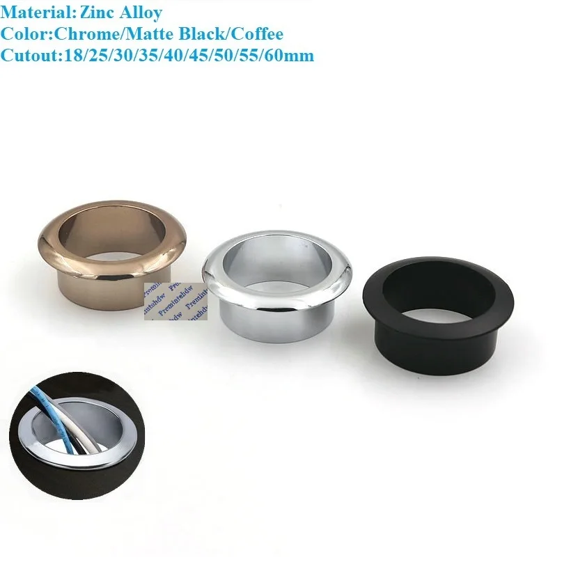 Passacavi da Scrivania in Zinco, Anelli Protettivi per Cavi, Copertura Nera Opaca, Argento, Rame