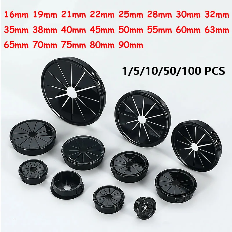 1/5/10/50/100 Pz 16/19/21/22/25/28/30/32/35/38/40-90mm Nero Snap-on Foro Copertura RSB Rotondo Scrivania Filo Tavolo Linea Cavo Foro-Coperchio