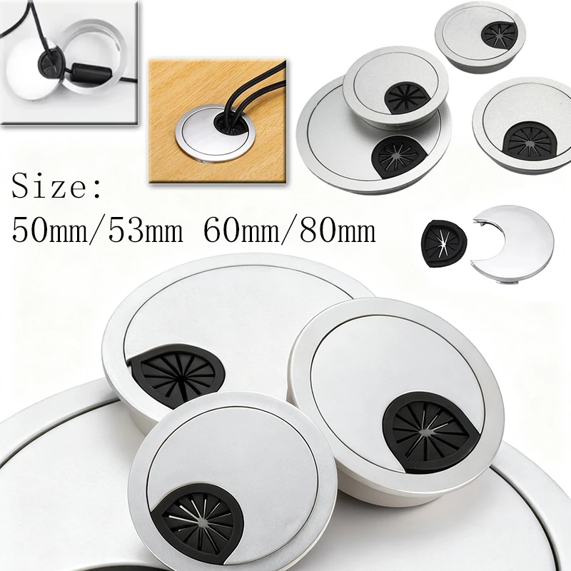 1-10pcs Porta di uscita del coperchio del foro del filo in lega di zinco 50mm/53mm/60mm/80mm Tavolo Computer PC Scrivania Cavo rotondo Passacavo Supporto linea