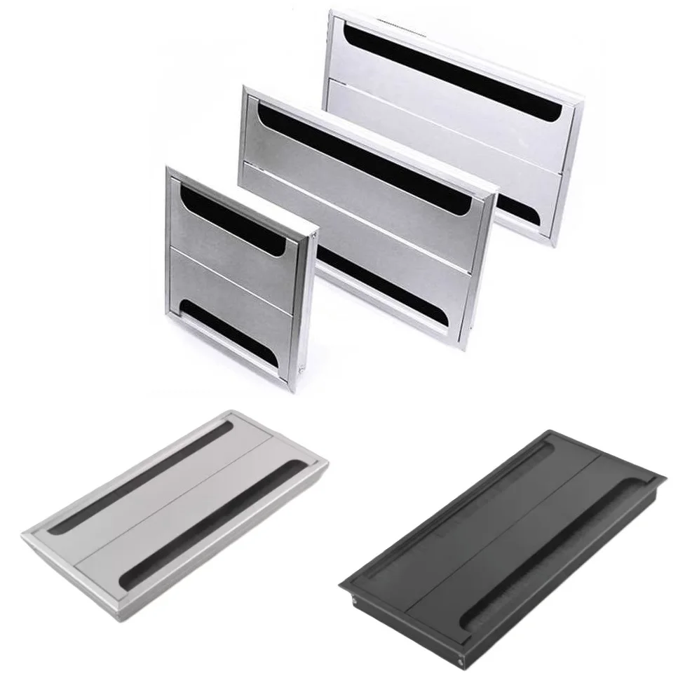 1 Pezzo Passacavo Rettangolare in Alluminio per Scrivania con Chiusura Ammortizzata, Scatola per Gestione Cavi, Guarnizione a Spazzola, Oro Nero Argento Grigio