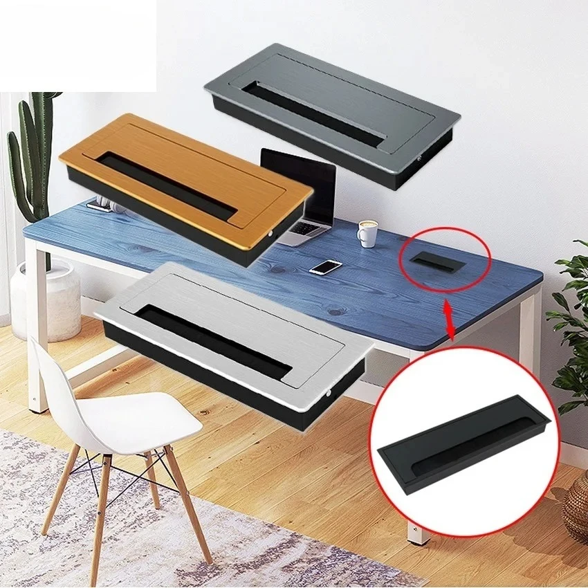 1 pezzo rettangolare in alluminio da scrivania foro per filo copertura scatola di gestione del cavo morbido flip spazzola guarnizione passacavo oro nero argento grigio
