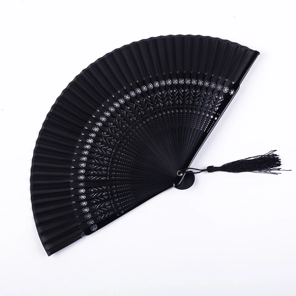 Ventagli pieghevoli alla moda incisi donne eleganti regali in legno ventaglio con borse nappe matrimonio Mariage Festival Party Dance puntelli