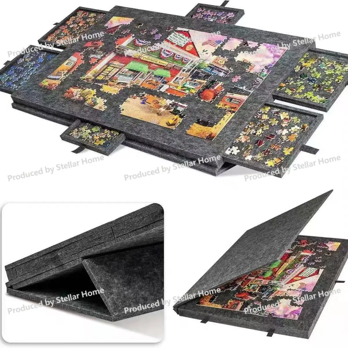 Tavola in feltro Tavola pieghevole per puzzle Tavola per smistamento con coperchio a staffa 6 cassetti Bambini portatili