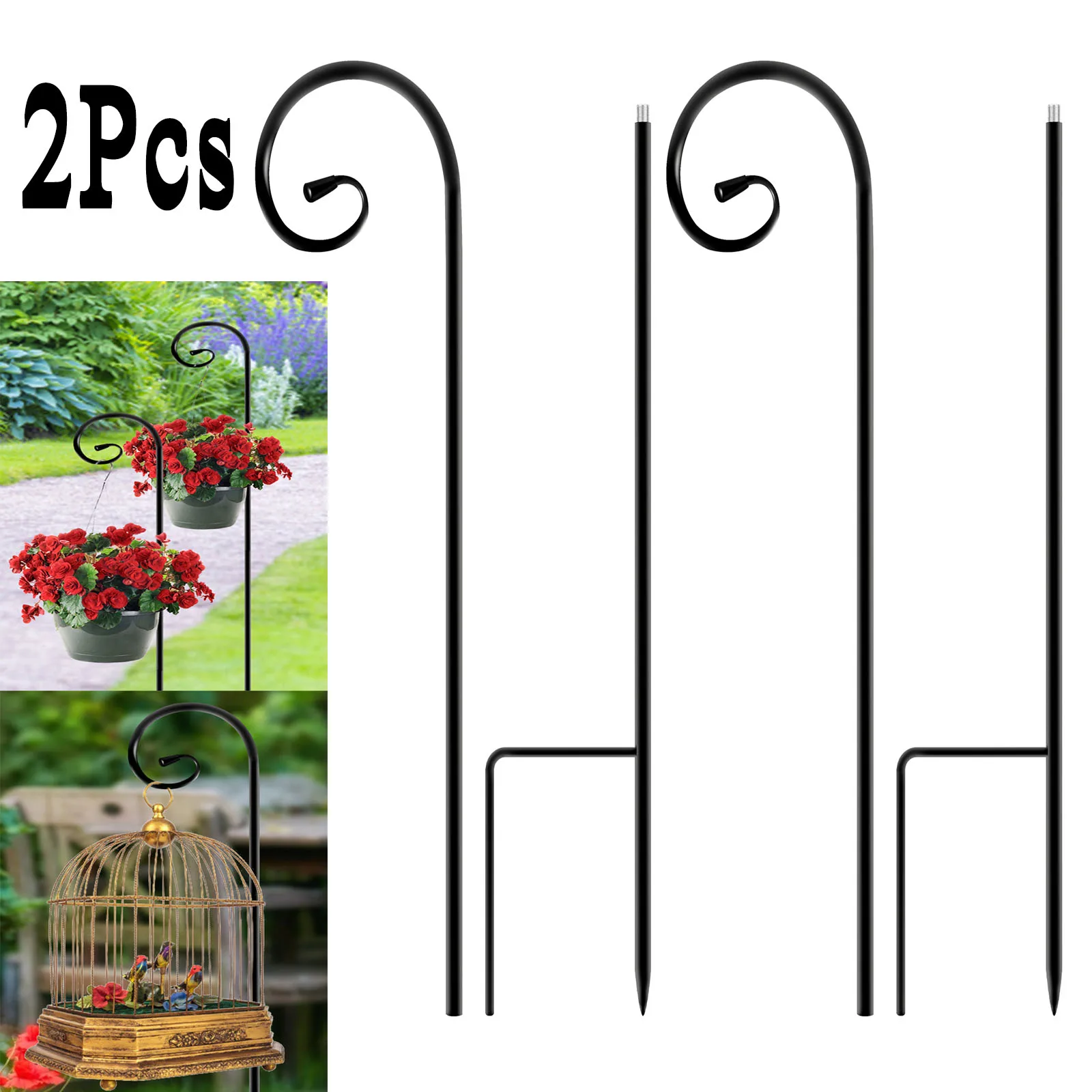 2 pz metallo pastore Crook ganci supporto per vaso di fiori resistente mangiatoia per uccelli palo giardino all'aperto cesto per piante lampada appendiabiti decorativo