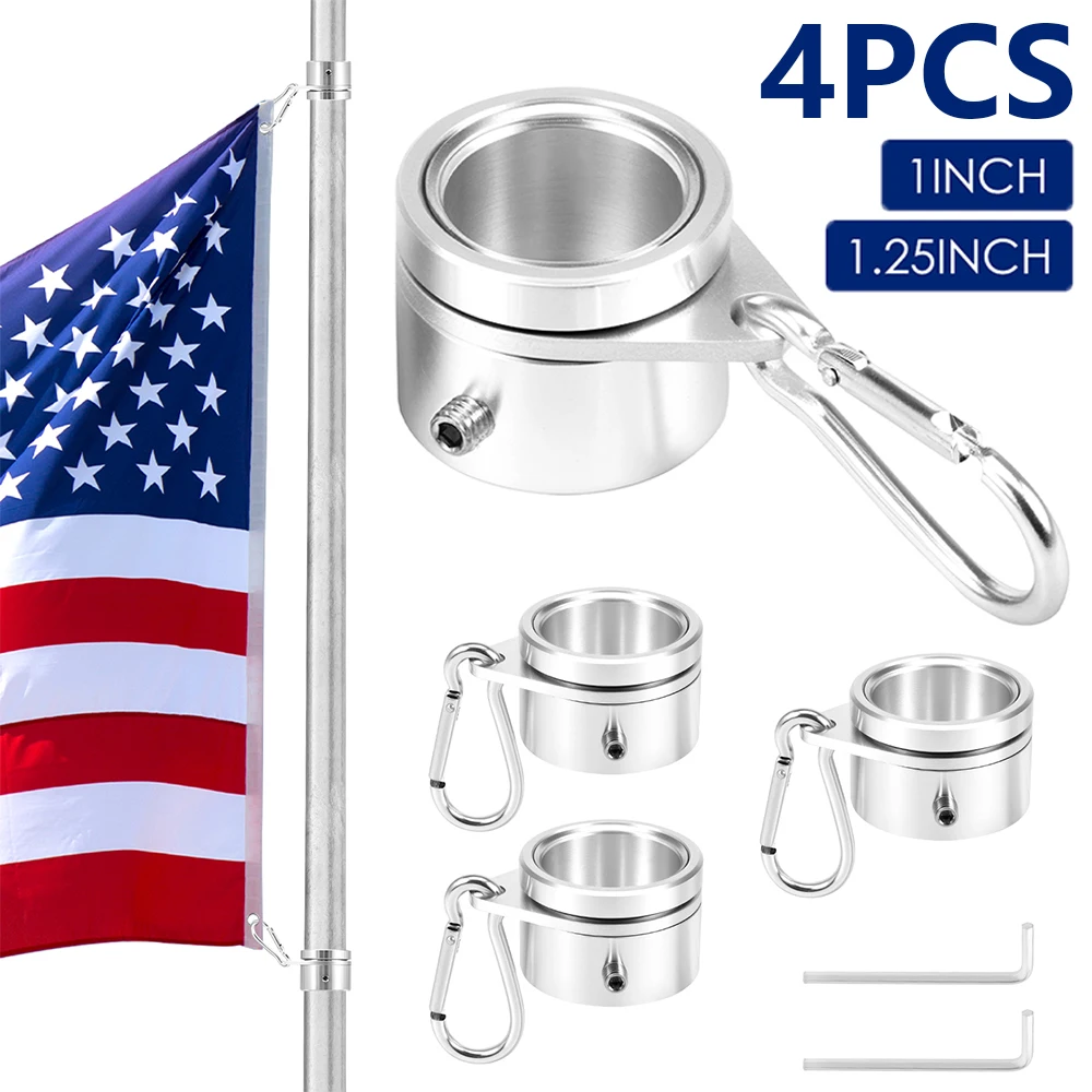 Anello per asta portabandiera da 4 pezzi Anello girevole per asta portabandiera antiruggine in lega di alluminio con cuscinetto Sfera in acciaio e fibbia Anti avvolgimento per asta portabandiera Spinner