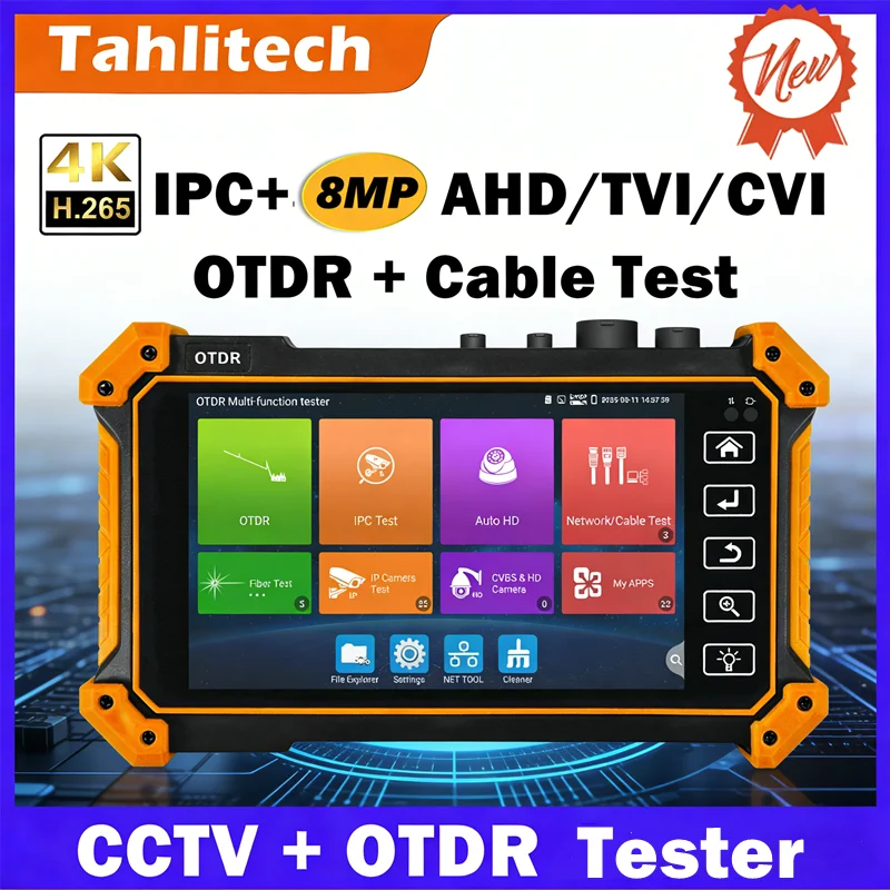 Tester CCTV 4K con Funzione OTDR 1310/1550nm, Test Telecamere TVI CVI AHD, Misurazione Lunghezza Fibra, Mappa Eventi, Test Cavi di Rete