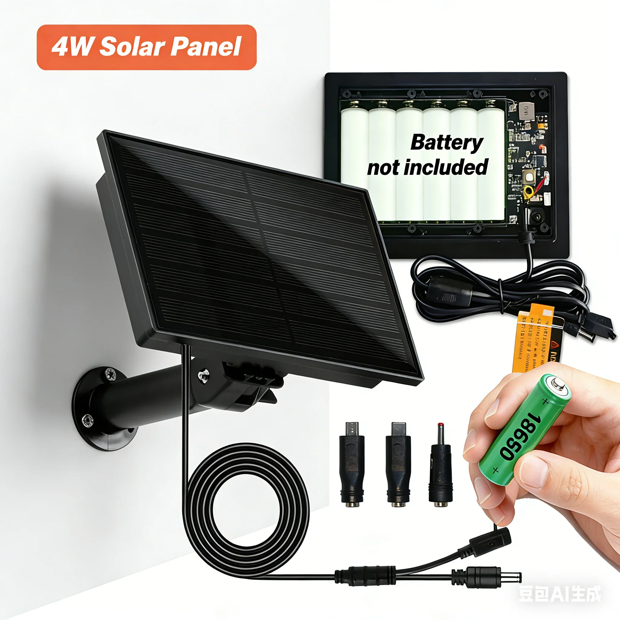 Pannello solare da 4 W Uscita Micro USB/TypeC impermeabile 5 V 6 V 9 V 12 V Celle solari Carica Installa 18650 Batteria Telecamera di sicurezza esterna