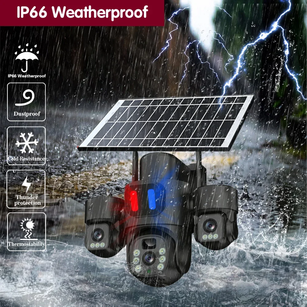Telecamera con scheda SIM 4G con pannello solare Proiettore esterno Telecamera tripla PTZ Sorveglianza Protezione di sicurezza CCTV Videocam V380 Pro