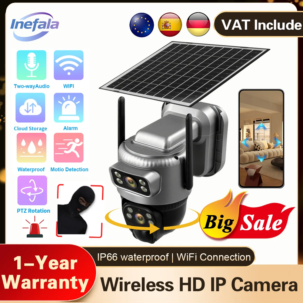 Inefala V380pro Telecamera WIFI a doppio obiettivo PIR solare Rilevazione umana Visione notturna Video impermeabile Telecamera di sicurezza video CCTV da 6 MP