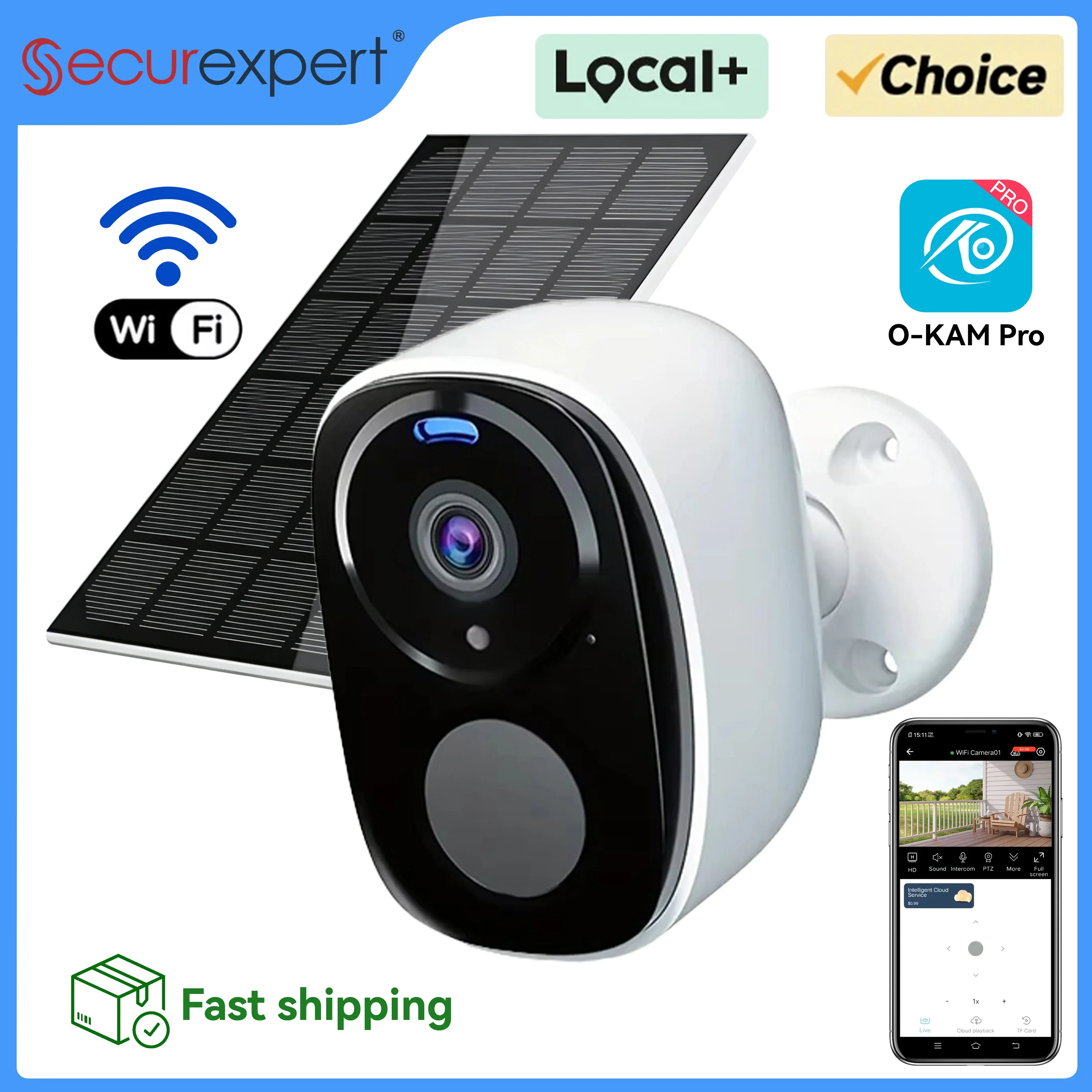 Telecamera di Sicurezza Solare 5MP per Esterni, WiFi 2.4G Wireless, Visione Notturna a Colori, Rilevamento Movimento PIR, Impermeabile, Audio Bidirezionale, Telecamera a Batteria