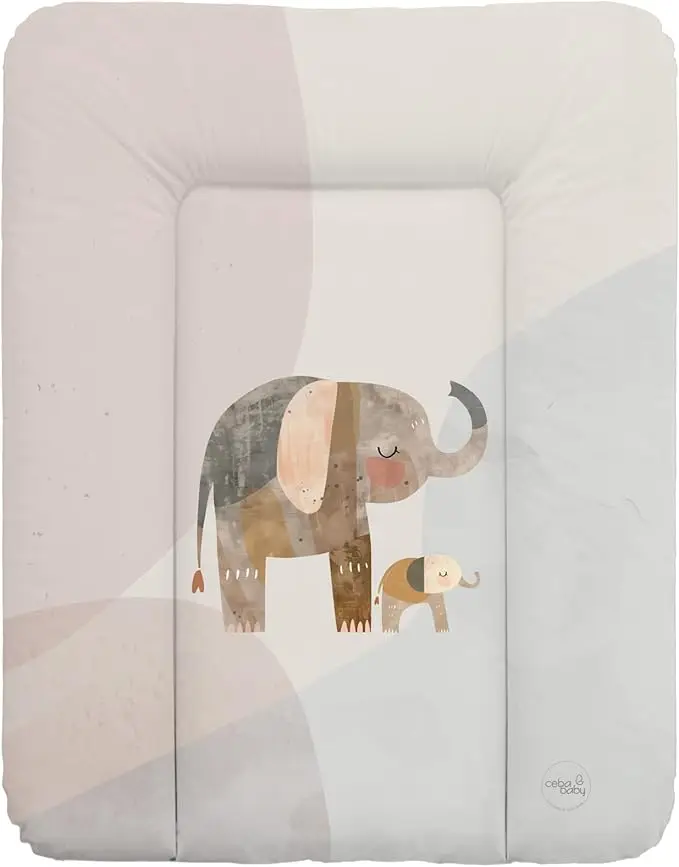 Ceba Baby Fasciatoio Materassino 50x70 cm - Cuscino Morbido e Impermeabile per Cambio Pannolino Neonati e Bambini - Fantasia Famiglia di Elefanti
