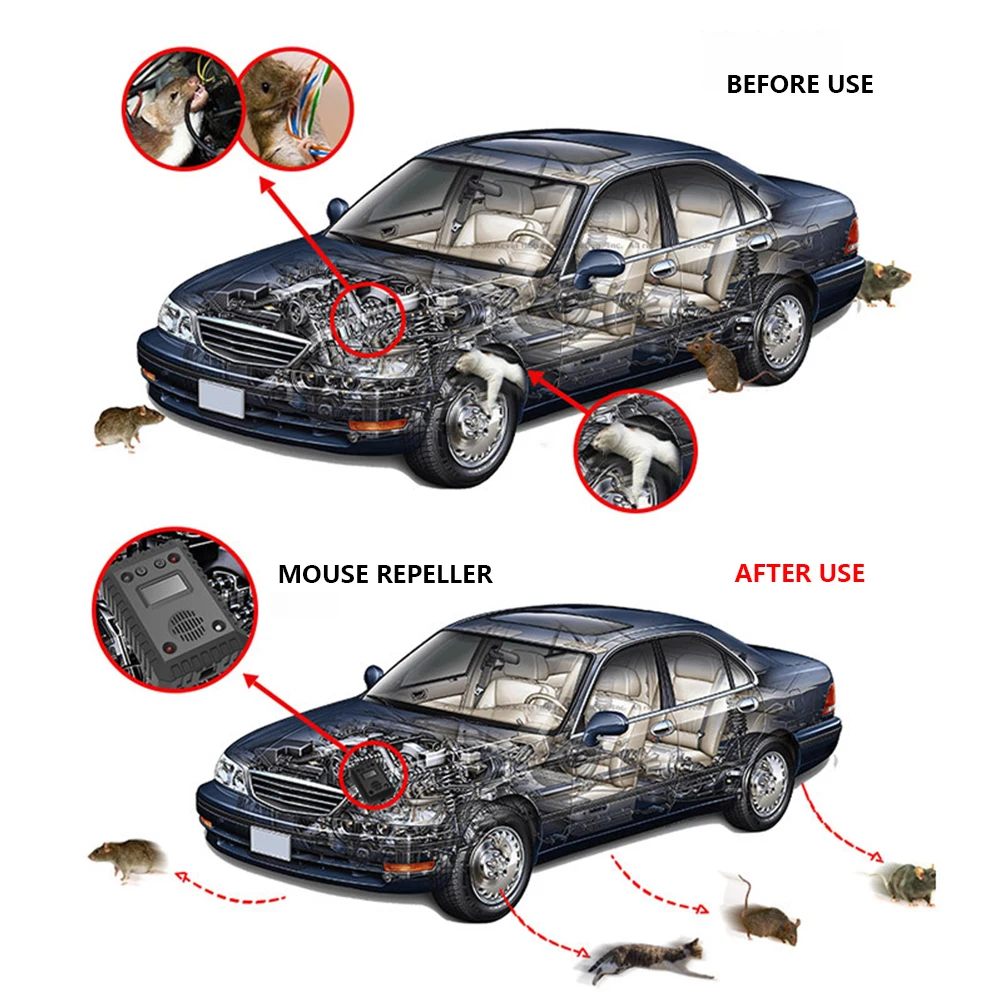 Repellente per ratti per auto ad ultrasuoni 12V/5V deterrente per ratti alimentato mantiene i mouse lontani dall'auto