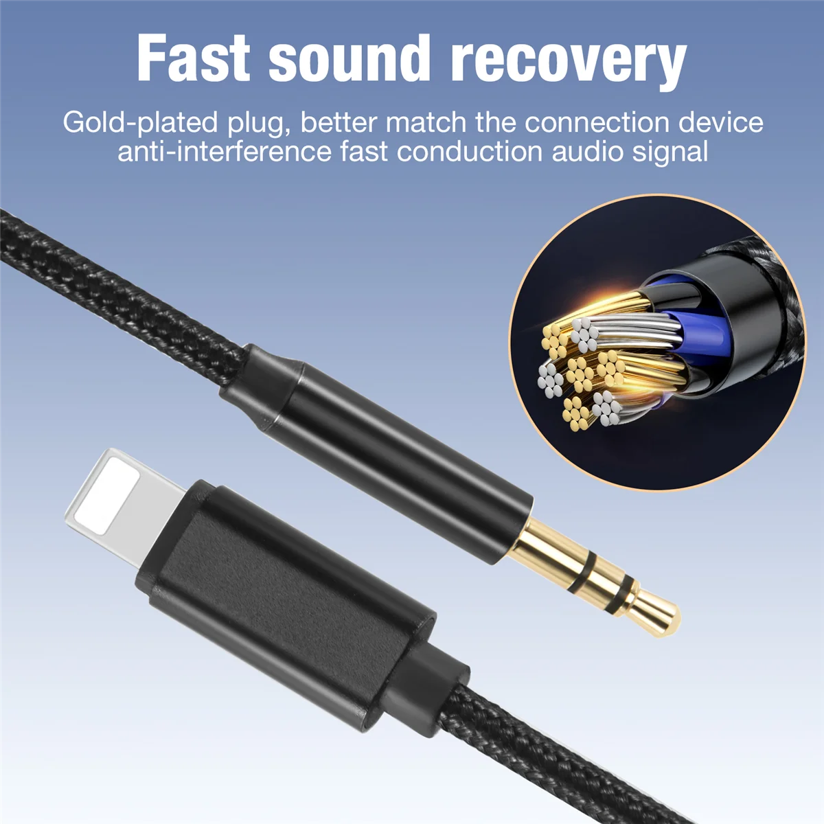 Car AUX Cable for iPhone Audio Cable Aux Cable to 3.5mm Premium Audio for iPhone 13 Pro-8 Plus Car Stereos