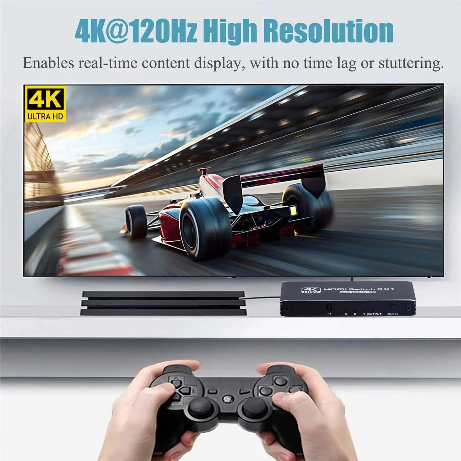 Adattatore splitter 4K120Hz per commutazione interfaccia multimediale ad alta definizione con telecomando Adattatore Plug And Play a bassa latenza per