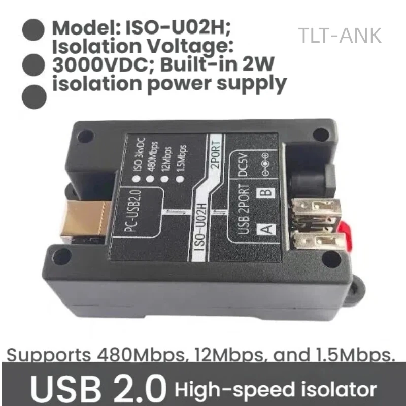 Isolatore USB 2.0 ad alta velocità HUB da 480 M da 1 a 2 con protezione ad alta tensione, decodificatore DAC per eliminare il rumore corrente