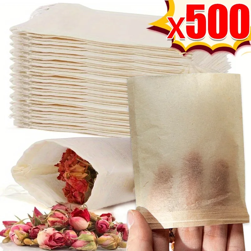 100-500 sacchetti per infusore per tè usa e getta con coulisse per tè a foglie sfuse e sacchetti di carta per spezie, accessori per bicchieri da cucina per la casa