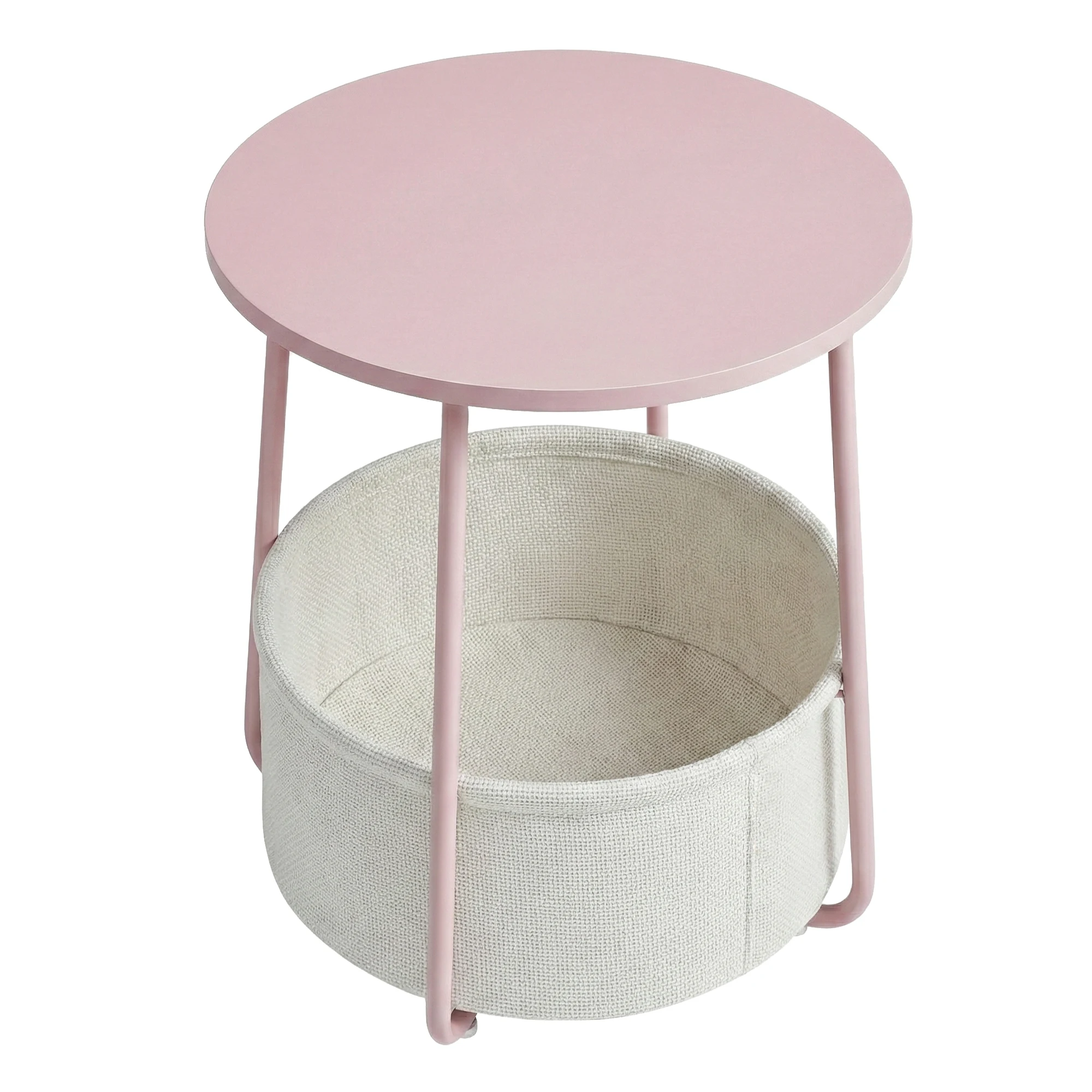 Tavolino VASAGLE, Tavolino Rotondo con Cesto in Tessuto, per Soggiorno e Camera da Letto, Comodino, Stile Moderno