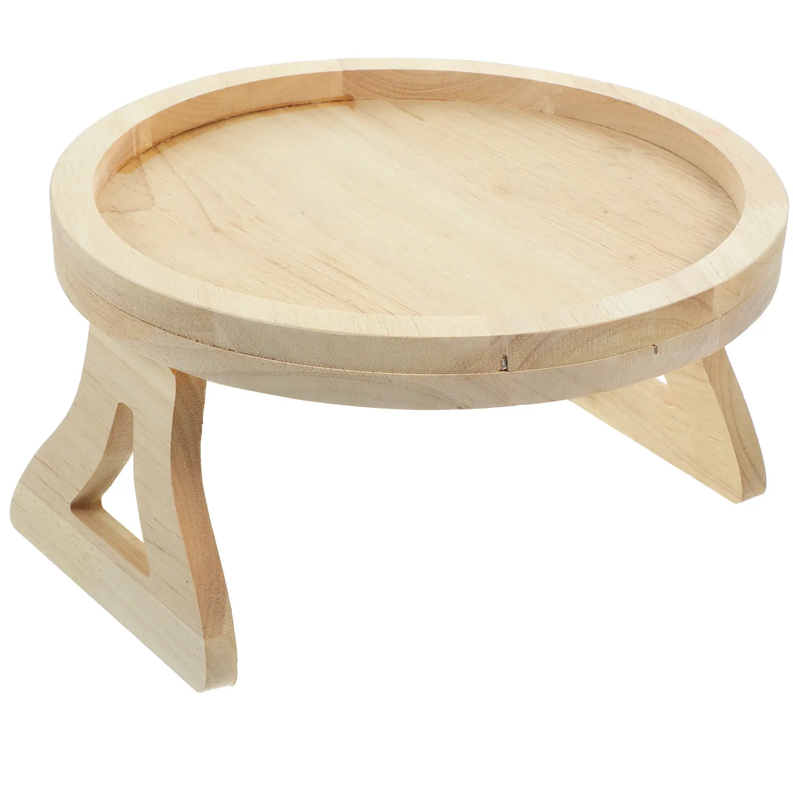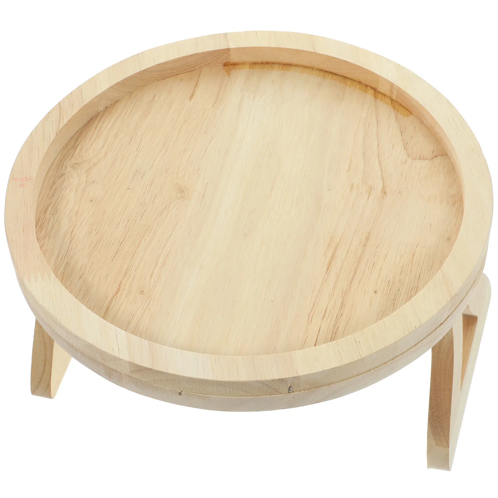 Vassoio Rotondo in Legno di Alta Qualità per Divano, Tavolino Pieghevole da Bracciolo, Porta Snack per Dessert, Libri, Telefono, Tazza di Caffè, Clip Stabile