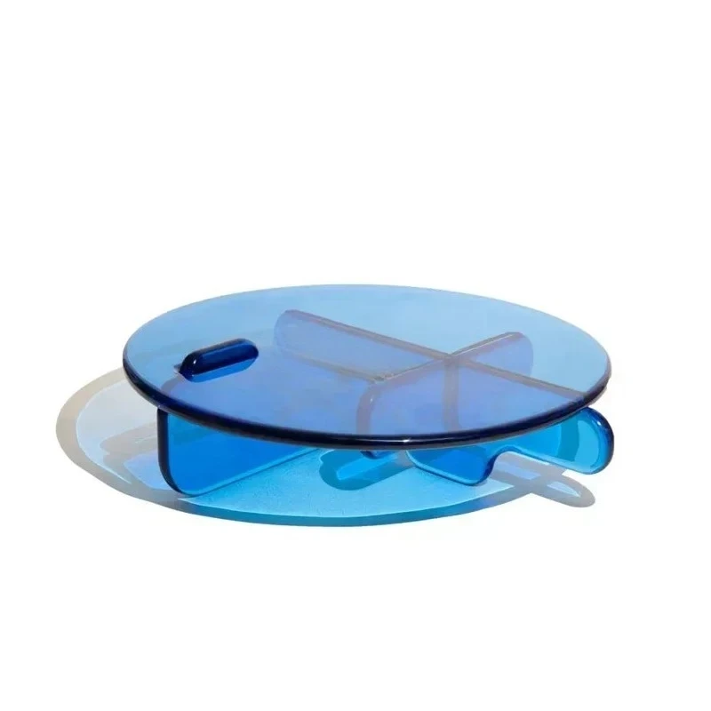 Tavolino da tè rotondo in acrilico blu trasparente minimalista nordico per piccolo appartamento