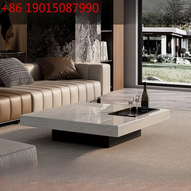 Tavolino da caffè in marmo naturale, lusso leggero, stile minimalista italiano, tavolino da caffè quadrato di alta gamma per la casa