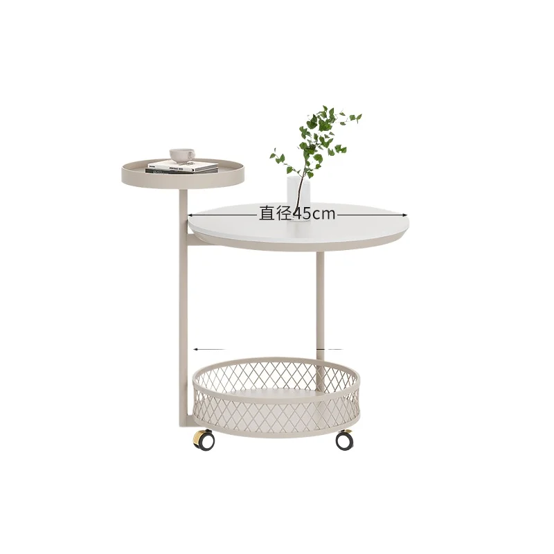 Tavolino con rotelle color crema con ruote Tavolino in metallo a 2 livelli per piccoli spazi Comodino portaoggetti superiore grande Mobili per camera da letto