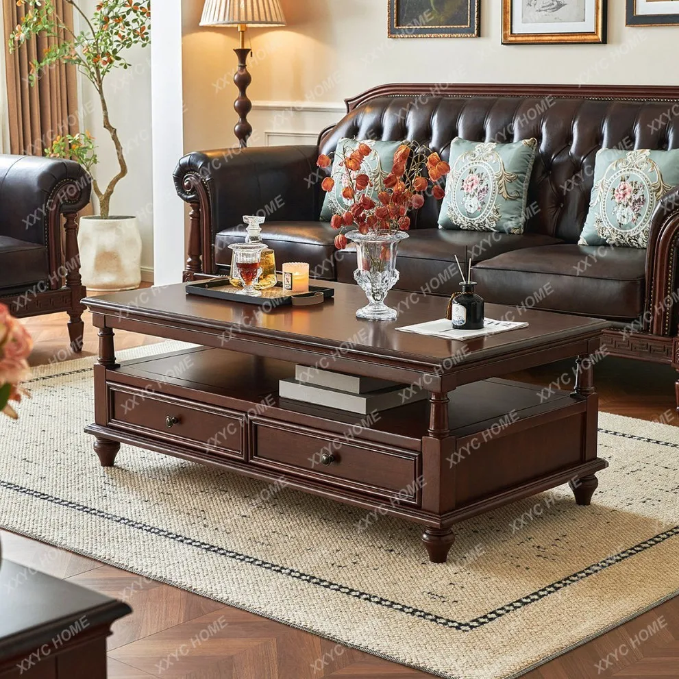 Tavolino da caffè in legno massello Q, stile retrò, per soggiorno, arredamento per piccoli appartamenti.