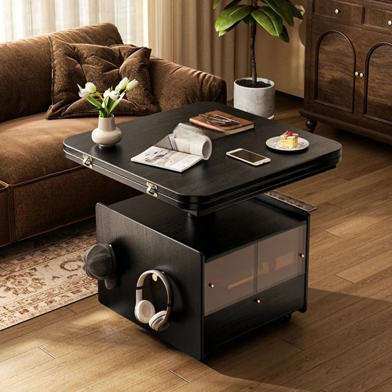 Tavolino da caffè pieghevole in legno massello, sollevabile e abbassabile, tavolino laterale mobile con ruote