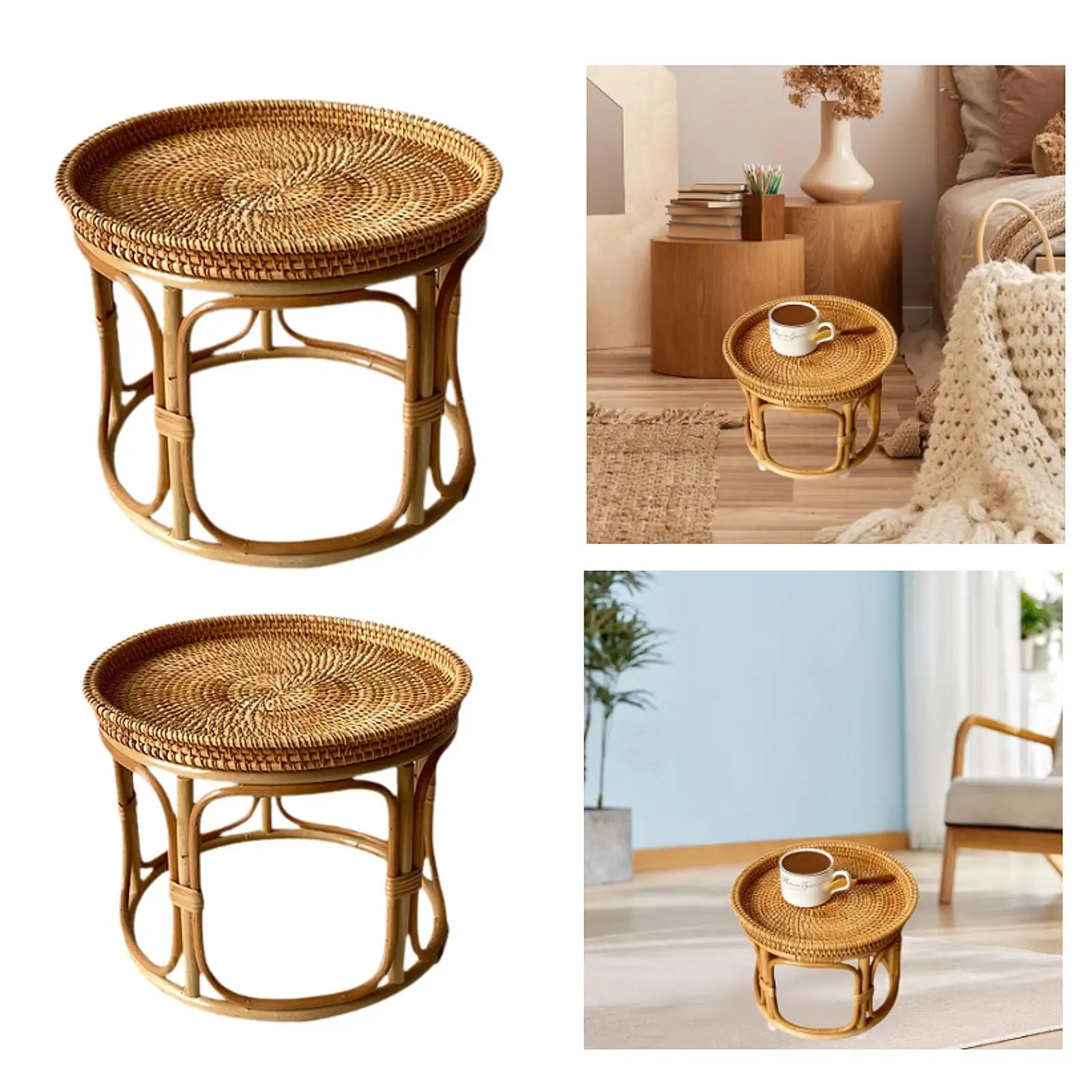 Tavolino in rattan, vassoio dal design retrò, comodino per ufficio, soggiorno, interno