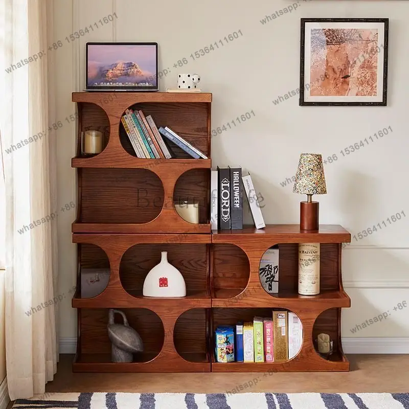 Mobile combinato multifunzionale interamente in legno massello in stile medio-antico, vetrina da comodino con pochi cerchi