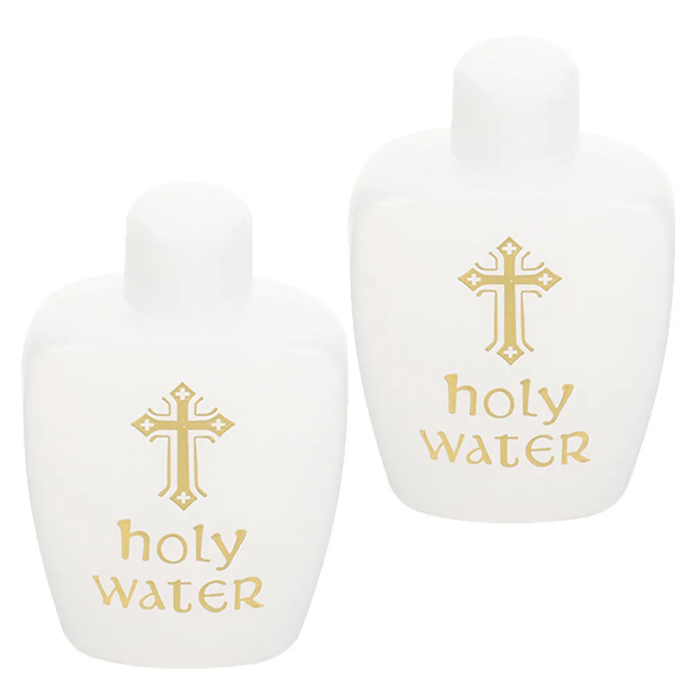 2 Bottiglie per Acqua Santa con Motivo Religioso in PE per Cerimonie di Battesimo, Fiale Decorative Ricaricabili in Plastica