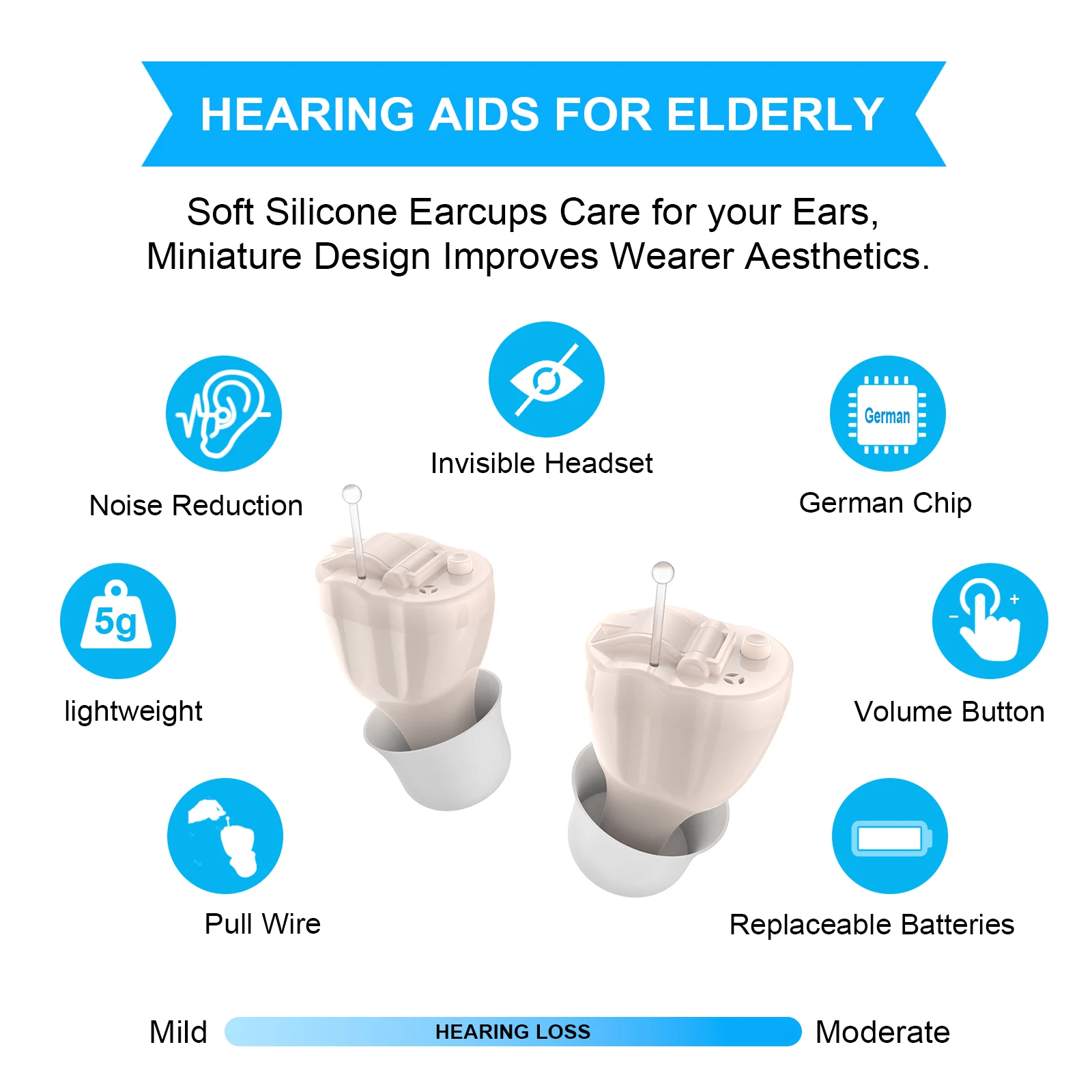 Mini apparecchi acustici ricaricabili Amplificatore audio tono ITE regolabile Anziani non udenti portatili