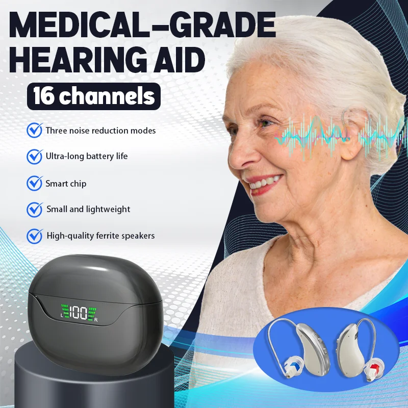 Apparecchio acustico invisibile di alta qualità per sordità/anziani, ad alta potenza, confortevole da indossare, senza ululati, apparecchio acustico a 16 canali