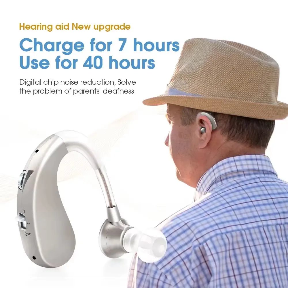 Apparecchi acustici Anziani Ricaricabili Sordità Il dispositivo di ascolto Mini Amplificatore audio wireless Apparecchi acustici invisibili Cuffie
