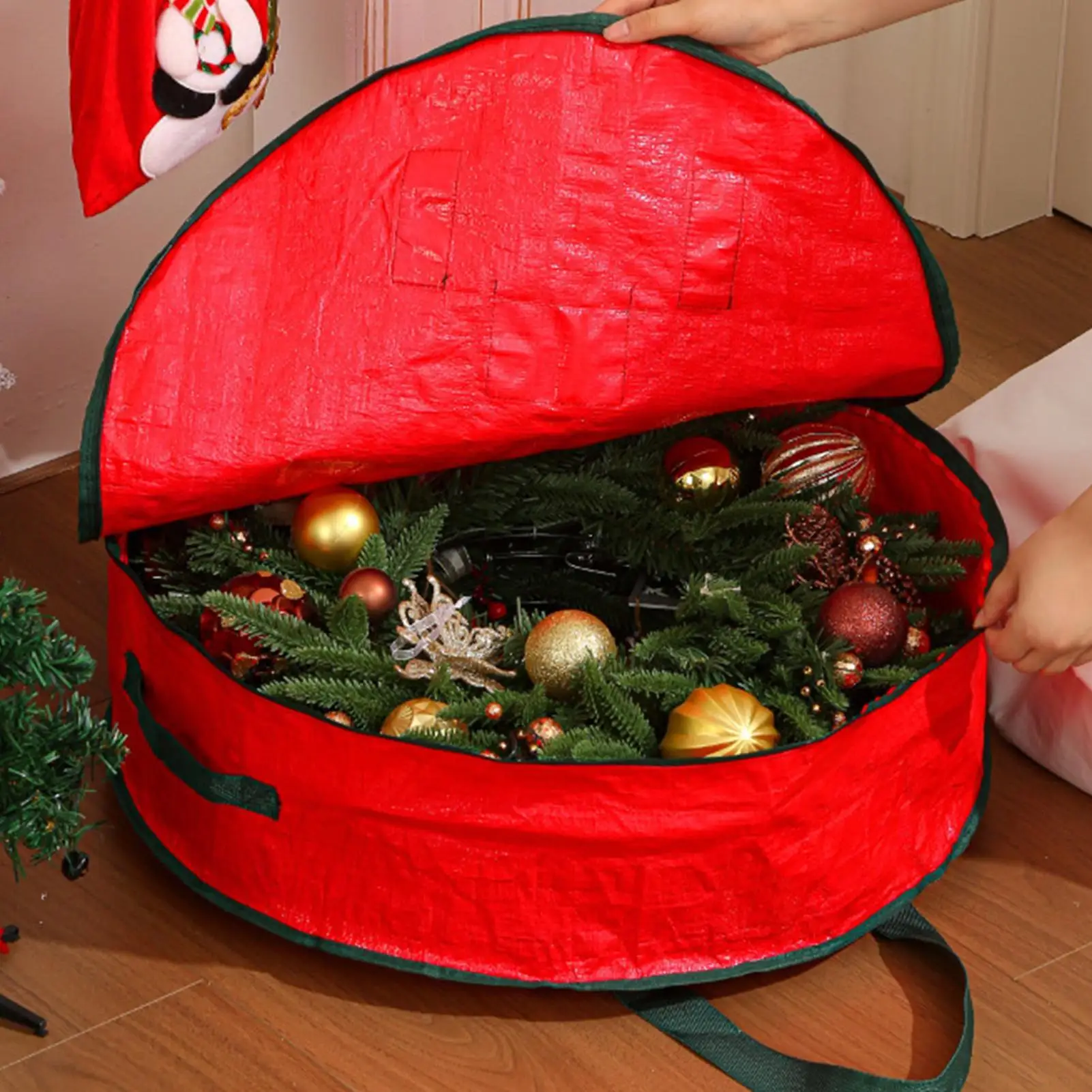 Borsa porta ghirlande natalizie in tessuto Oxford rinforzato, contenitore stagionale per ghirlande con maniglia e cerniera