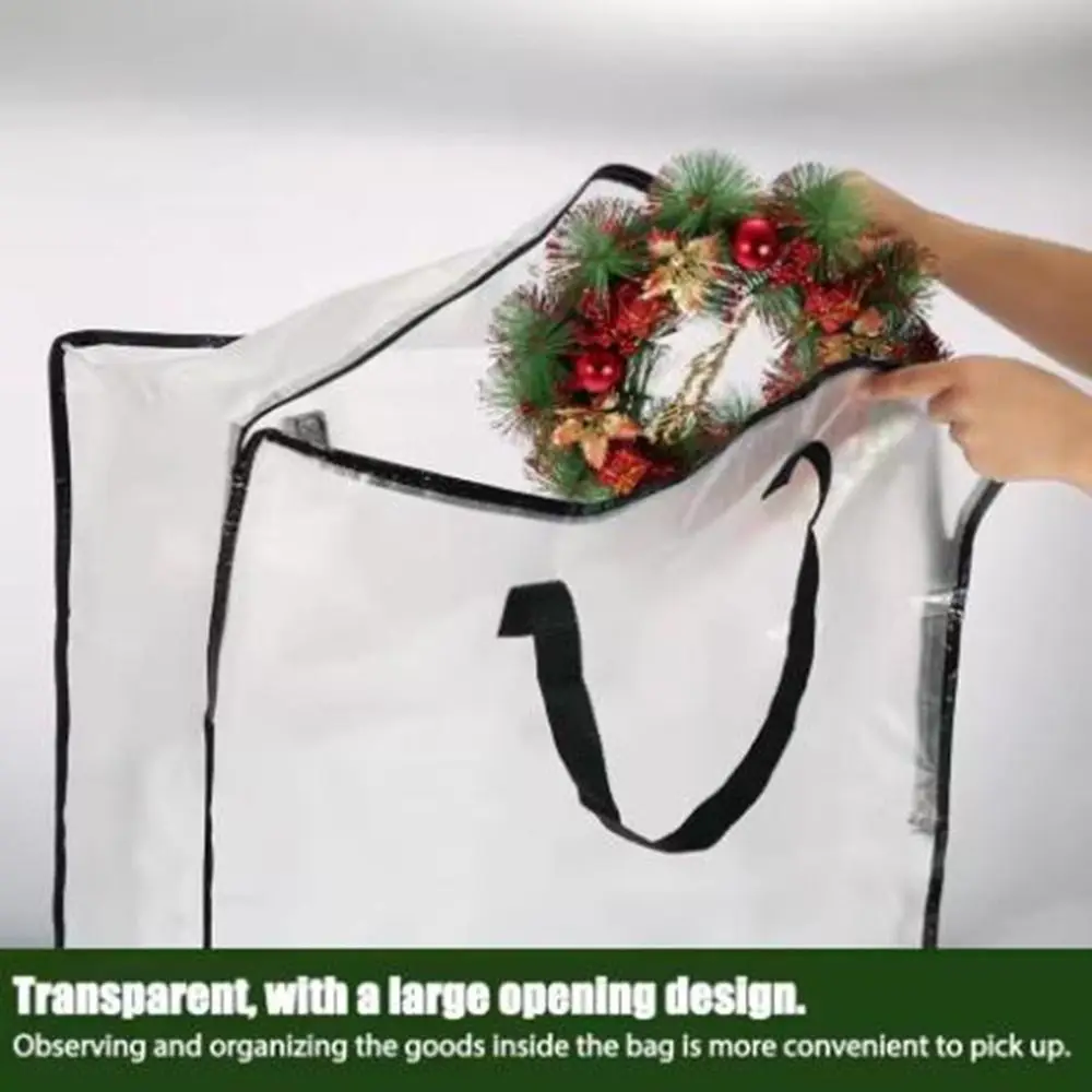 Borsa portaoggetti per ghirlande di ghirlande, pieghevole, trasparente, in PVC, bordo nero, durevole, decorazione natalizia, impermeabile, per il trasporto