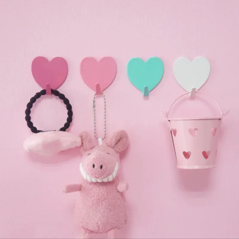 Ganci da parete autoadesivi Colore senza punzonatura Portachiavi a parete a forma di cuore Gancio per appendere a parete Cucina Bagno Organizzatore