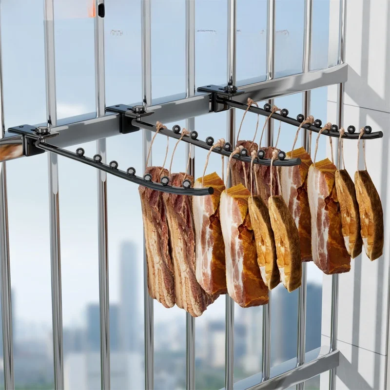 Balcone Carne Drng Ra Salsiccia Drng Gancio Fi Drng Stand Uso domestico Gancio in metallo Maniglia girevole Bracciale in acciaio inossidabile