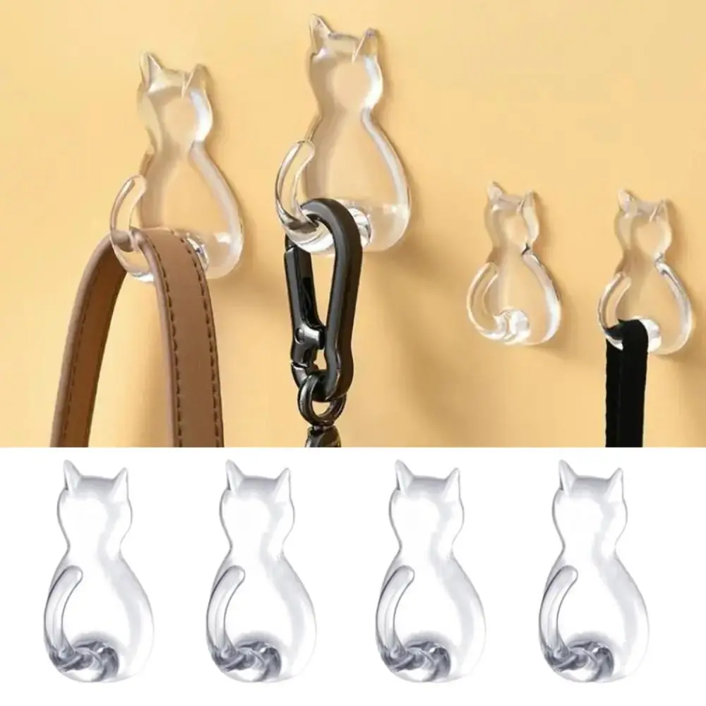 5 pezzi ganci adesivi coda di gatto montati a parete cartoni animati punzonatura gratuita ganci da parete ganci adesivi impermeabili trasparenti accessori per la casa