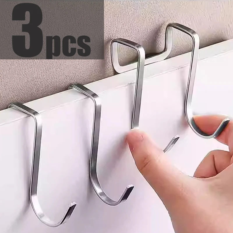 Ganci doppi in acciaio inossidabile da 3 pezzi Ganci per porte dell'armadio da cucina a forma di S senza trapano Ganci per vestiti montati sul retro dell'armadio del dormitorio