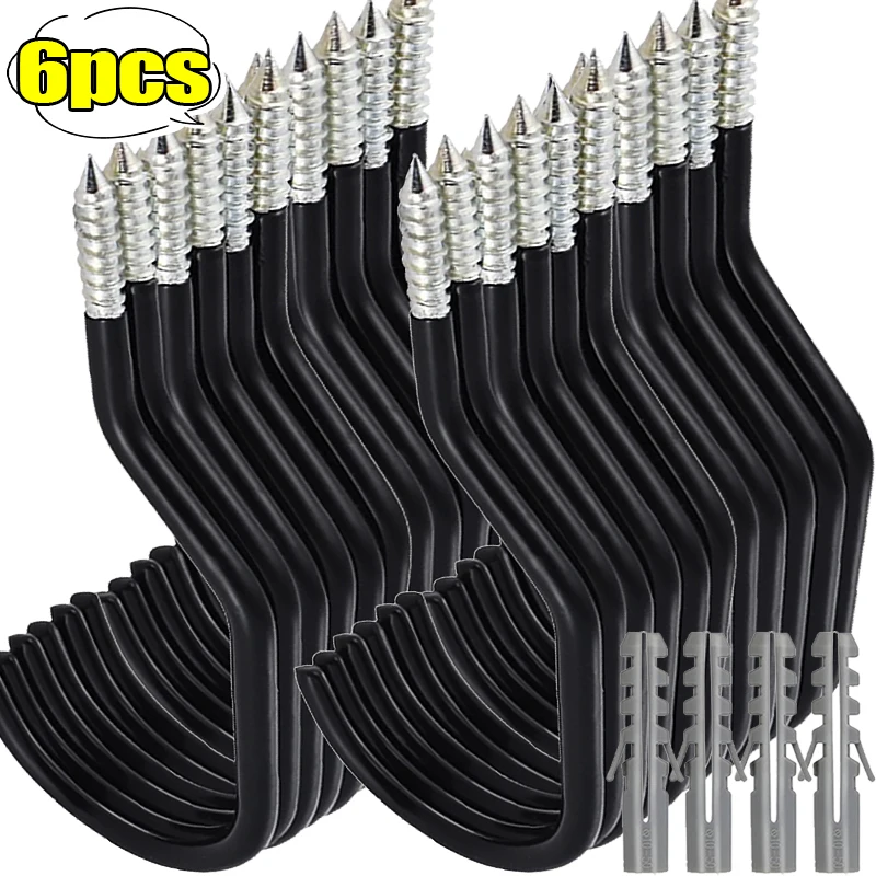 6/1 pezzi ganci portaoggetti per bici neri con bulloni gancio per montaggio a parete in metallo supporto da parete per biciclette per organizzatori per soffitto a parete nel seminterrato del garage