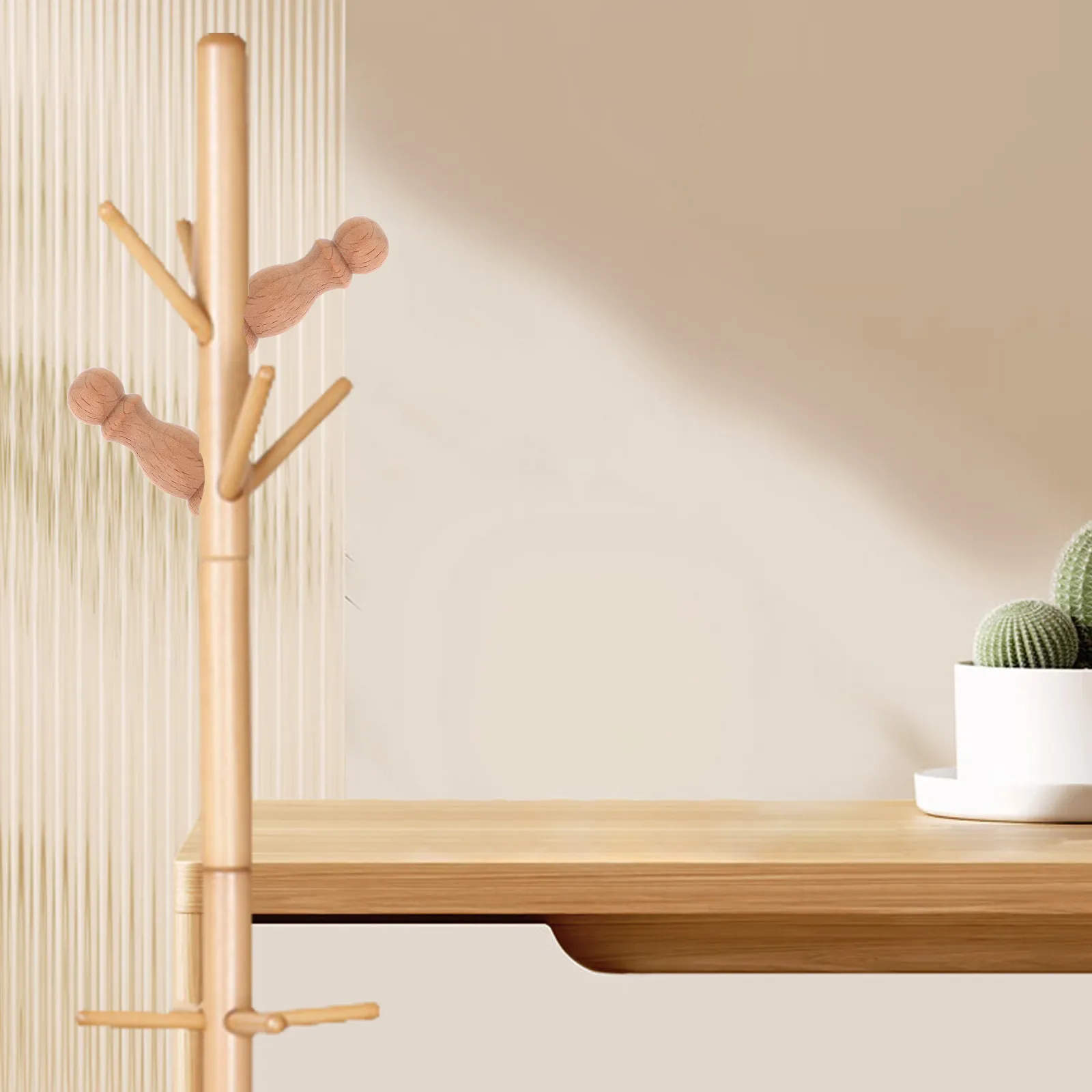 Set di 6 Ganci da Parete in Legno di Faggio, Appendiabiti Rustico, Porta Asciugamani per Bagno, Ganci Decorativi per Pannelli Forati