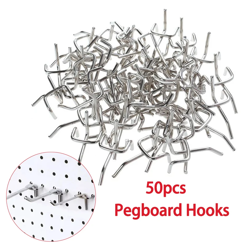 Ganci per pannelli forati 50 pezzi Ganci per pannelli forati Garage Lavoro Negozio di stoccaggio Display Organizzazione Stoccaggio Negozio al dettaglio Gancio Strumenti per esposizione