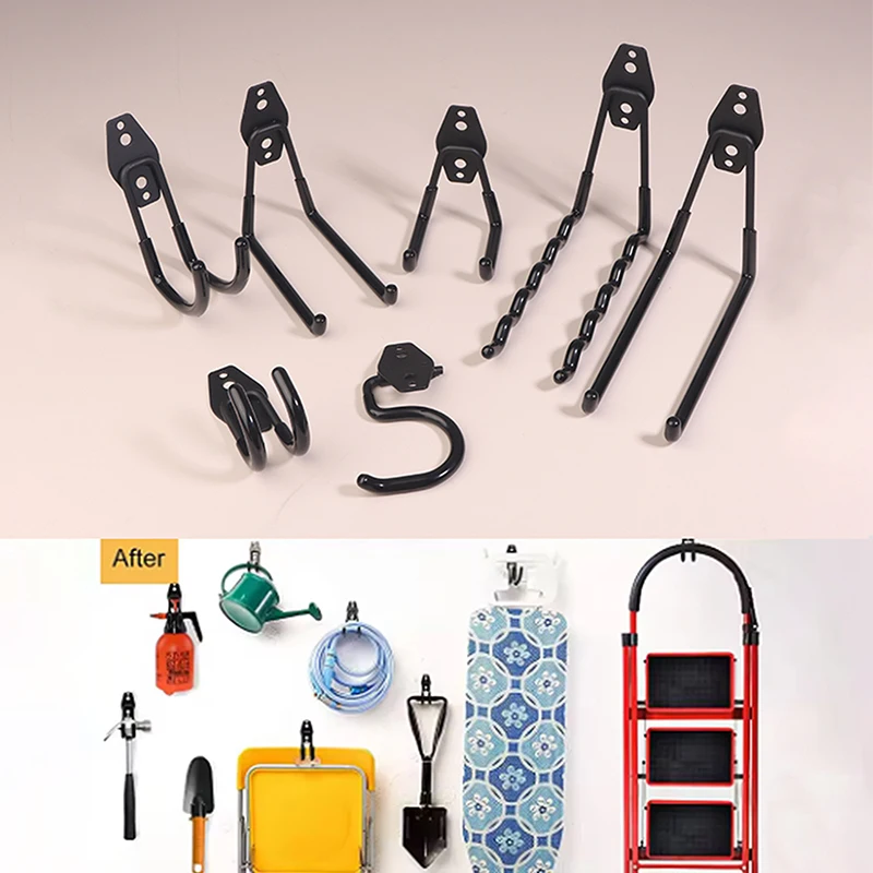 Gancio in metallo resistente Organizzatore per garage Montaggio a parete Ganci per ganci per biciclette Montaggio a parete Gancio di stoccaggio antiscivolo per scale Attrezzo da giardino
