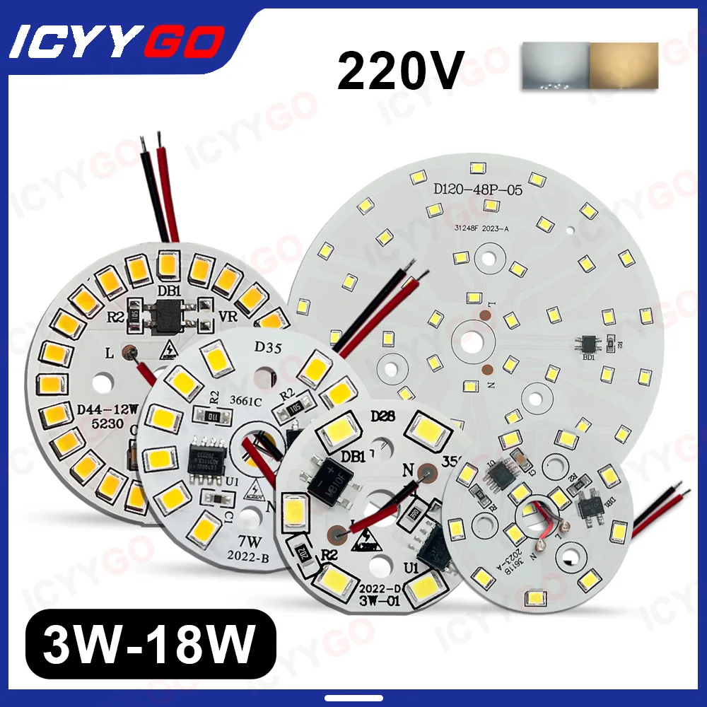 Scheda LED ad alta tensione senza driver da 5 pezzi 220 V, 5 W, 7 W, 12 W, 15 W, 18 W, scheda sorgente luminosa lineare, accessori per faretti, scheda PCB
