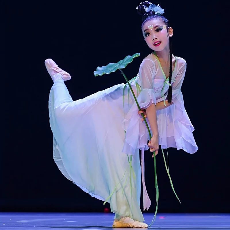 Costumi di danza classica per bambini eleganti Fan di gruppo e ombrello Abbigliamento da spettacolo Nuovi indumenti da ballo tradizionali per bambini