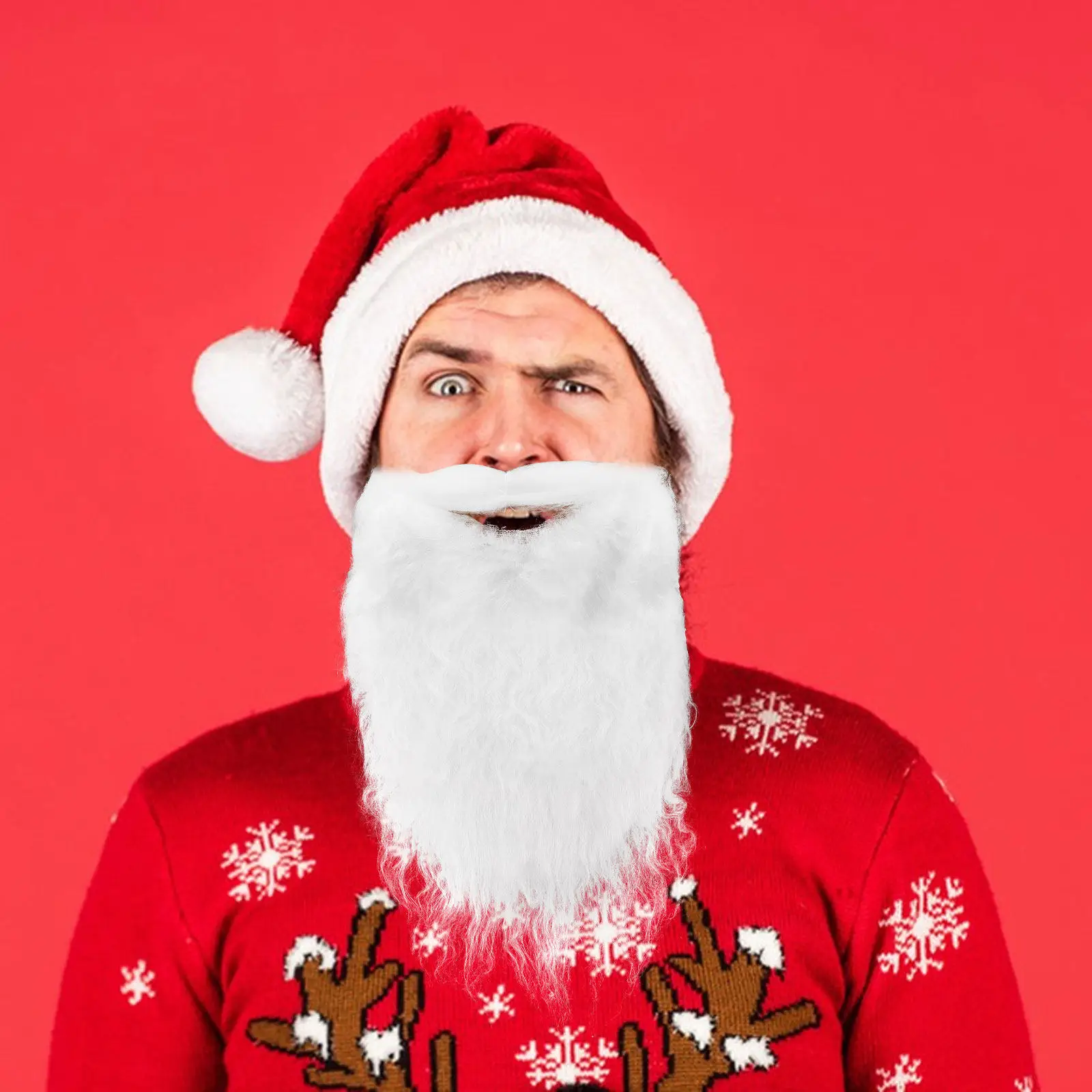 Set da 1 Pezzo per Cosplay di Babbo Natale con Barba, Fibra Sintetica Bianca, Baffi Ricci Elastici per Accessori Costume Natalizio
