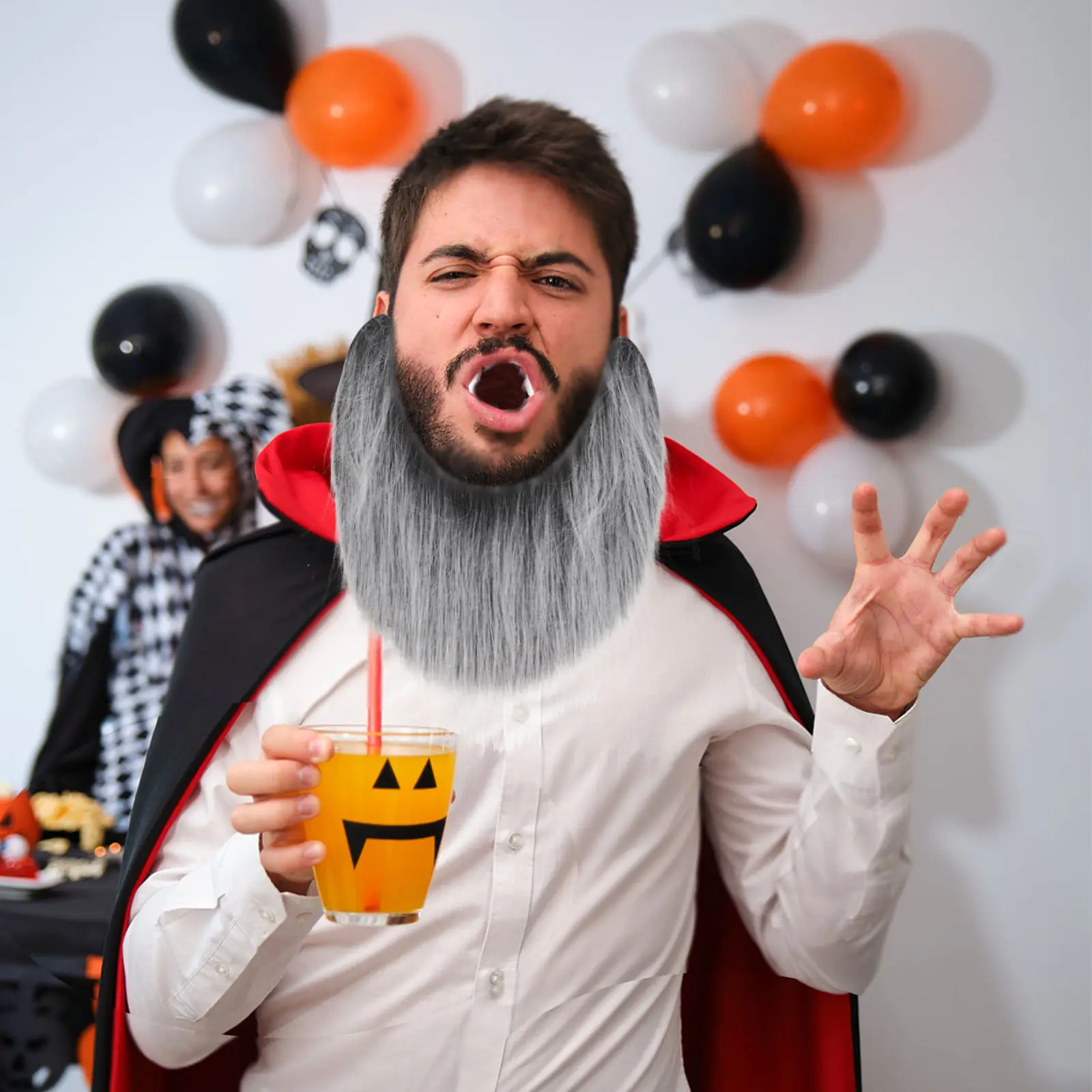 2 Pezzi Barba Finta Realistica Grigia, Peli Finti per Costume da Uomo, per Halloween, Mascherata, Cosplay, Feste, Giochi di Ruolo, Barba Sintetica Riutilizzabile
