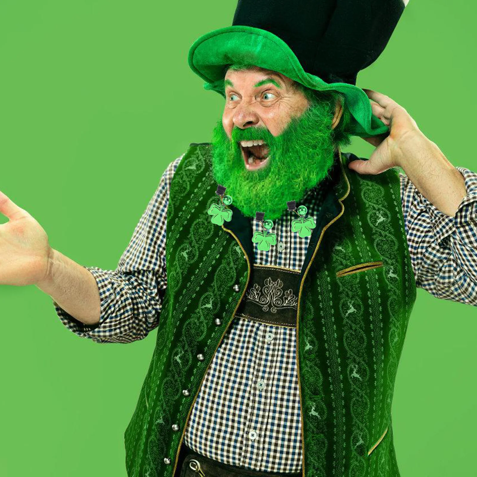 10 Pezzi Clip per Barba a Forma di Quadrifoglio, Ciondoli Lucidi, Ornamenti per Barba per Feste, Decorazioni per Capelli Facciali per San Patrizio e Natale